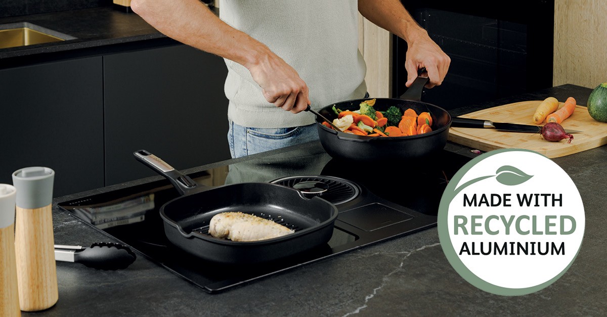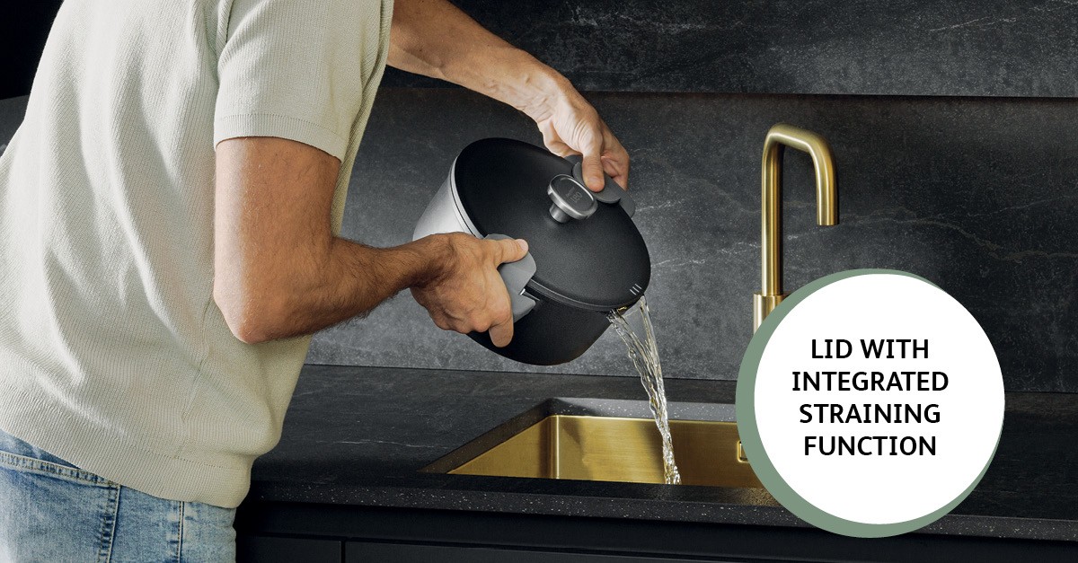 Hrnce a panvice Leo Phantom sú vyrobené z recyklovaného hliníka a vyznačujú sa funkčnou zmesou vysoko kvalitných materiálov a inovatívnym dizajnom. S ľahkým telom sa ľahko manipuluje a je potiahnuté zdravým (bez PFAS) keramickým nepriľnavým povrchom, ktorý má vynikajúce a udržateľné nepriľnavé vlastnosti, čo vám umožní variť s minimálnym alebo žiadnym obsahom tuku a hrnce a panvice sa ľahko umývajú. Riad Leo Phantom je navyše navrhnutý pre energeticky efektívne varenie vďaka optimálnym vodivým vlastnostiam hliníka a plnému dnu disku, ktorý sa rýchlo a rovnomerne ohrieva bez horúcich miest. Integrované samonasávacie hrbolčeky na pokrievkach sú navrhnuté tak, aby zachytávali a redistribuovali kondenzovanú vodu, čím uvoľňujú vlhkosť späť do jedla, a teda získate chutnejší pokrm. Viečka majú tiež integrovanú funkciu pasírovania.