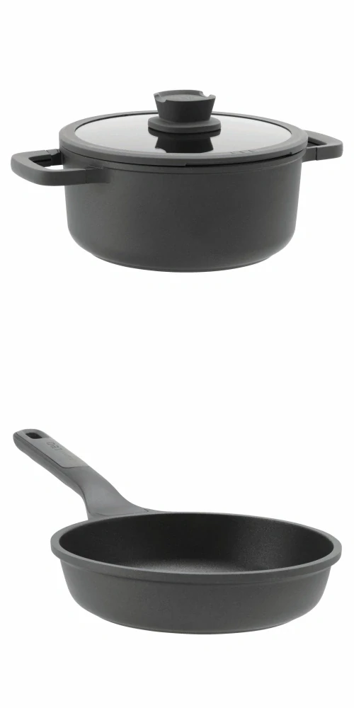 Získajte Panvicu Stone PLUS 28 cm a Hrniec Stone PLUS 24x14 cm s pokrievkou od BergHOFF v jednom výhodnom balíku! Tento prémiový set vám umožní variť chutné jedlá s minimálnym úsilím a maximálnym komfortom.